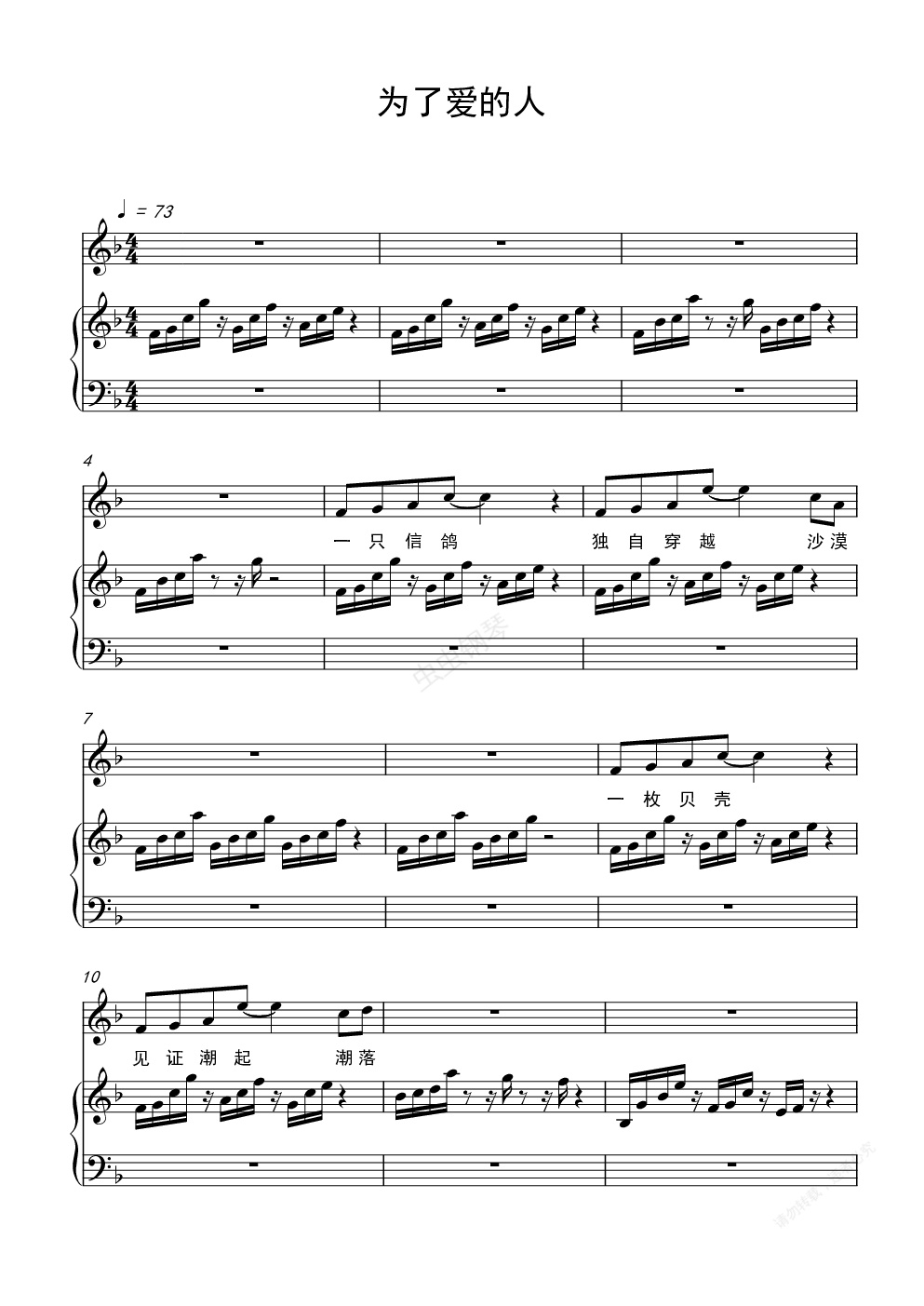 钢琴谱:为了爱的人