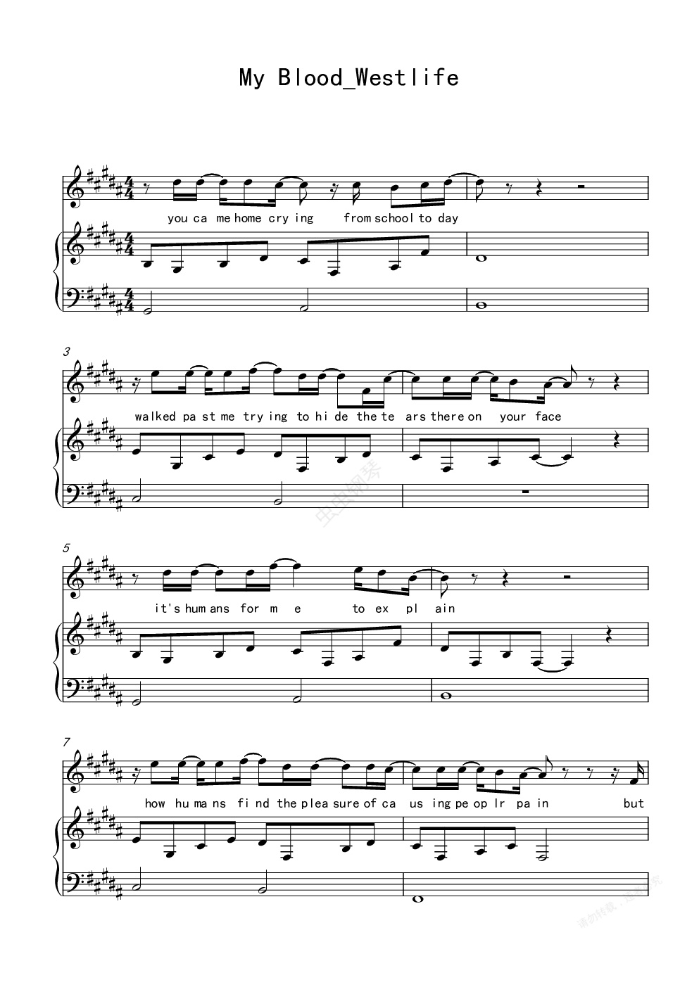 钢琴谱:My Blood_Westlife