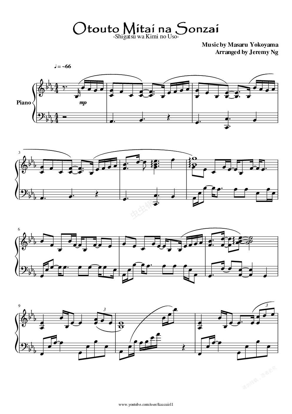 钢琴谱:shigatsu - otouto mitai na sonzai piano