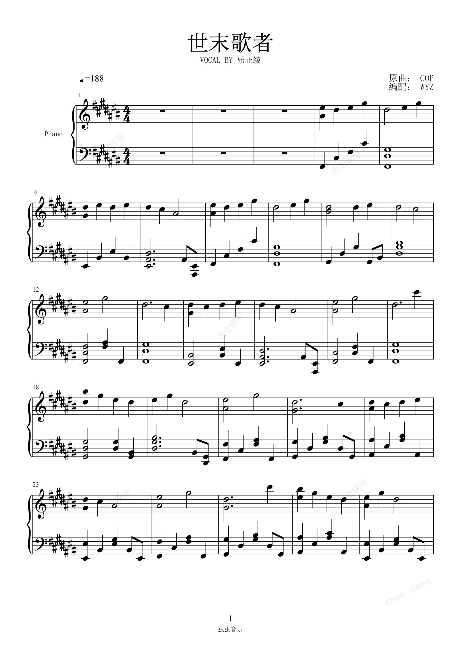 您的位置: 首页 > 钢琴谱库 > 世末歌者