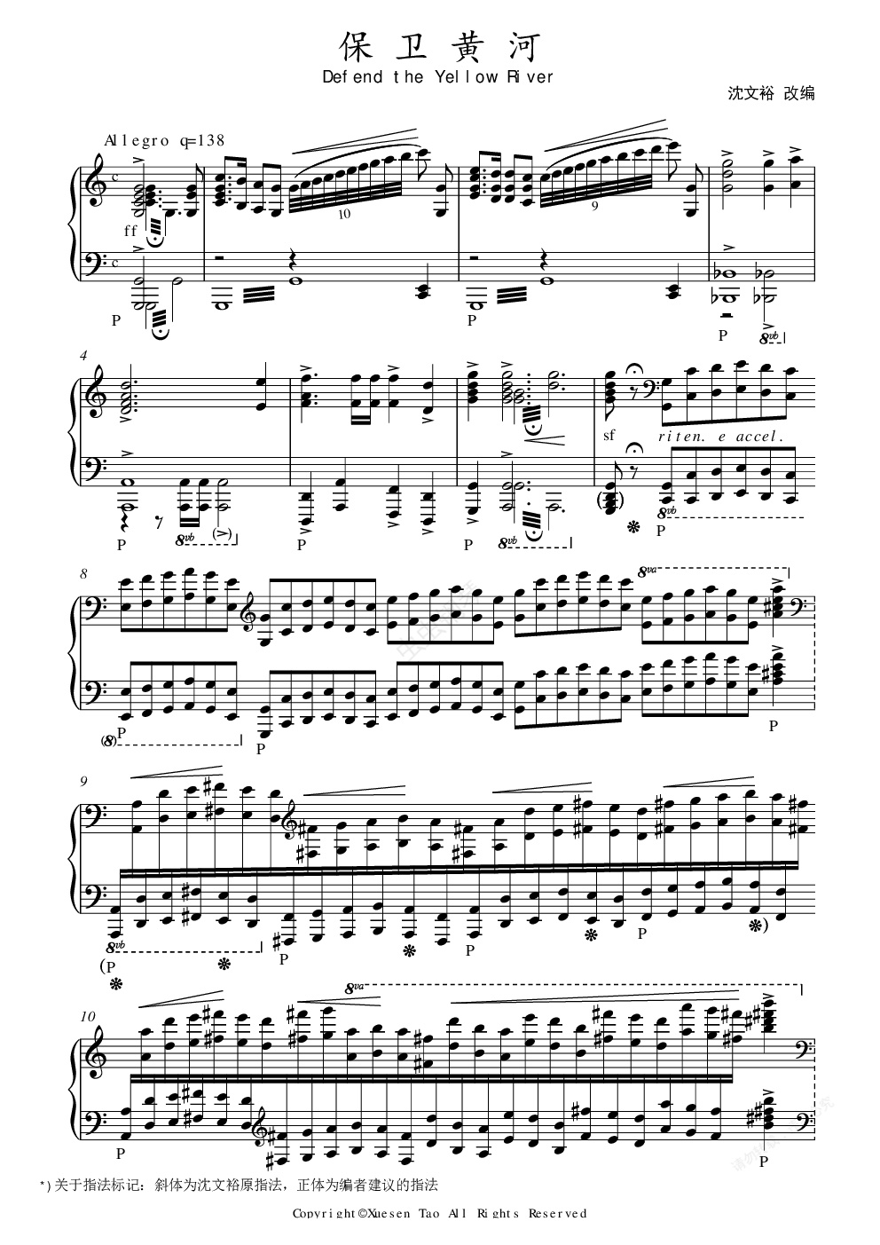 钢琴谱:【沈文裕】保卫黄河 《黄河》钢琴协奏曲第四乐章