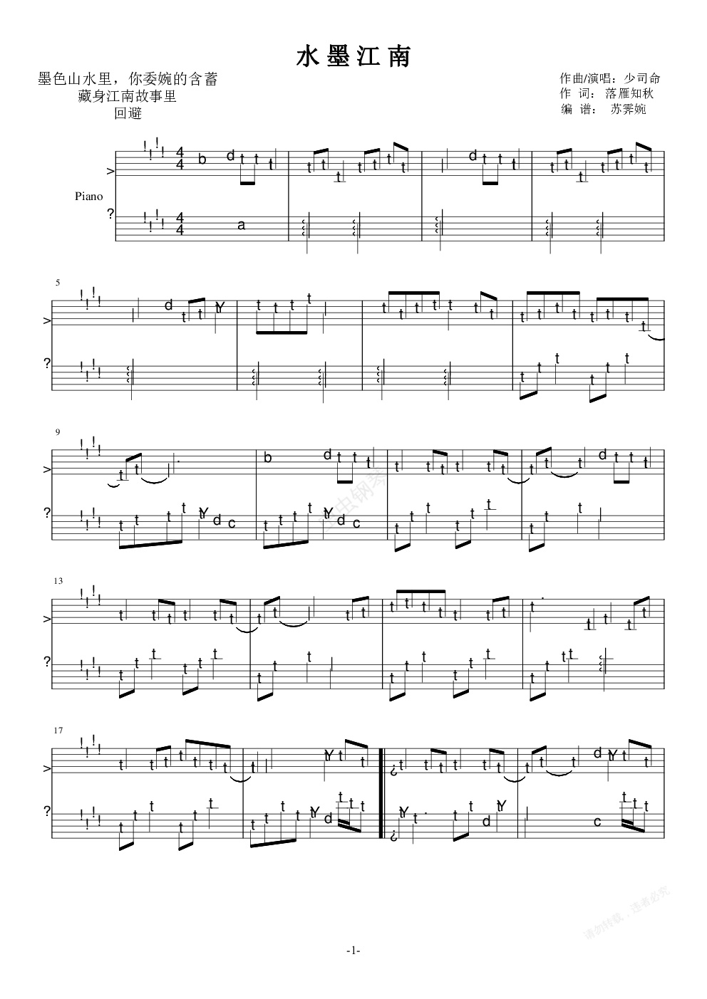 钢琴谱:水墨江南