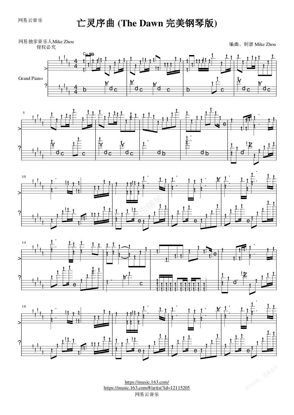 钢琴谱:亡灵序曲 (The Dawn 完美钢琴版)