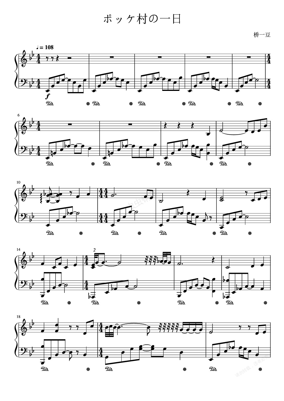 钢琴谱:波凯村的一天 (怪物猎人2G)