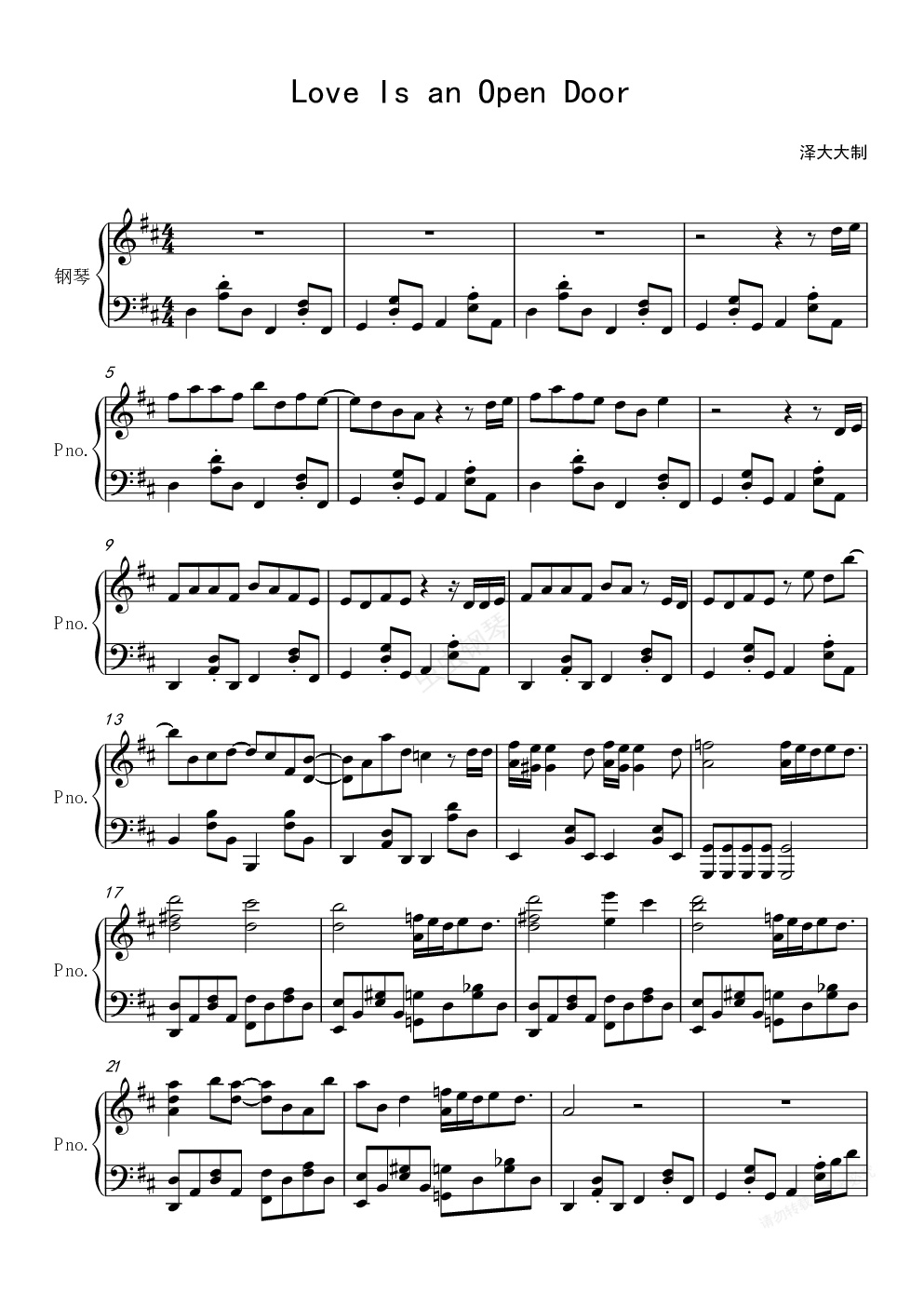 钢琴谱:Love Is an Open Door(冰雪奇缘)