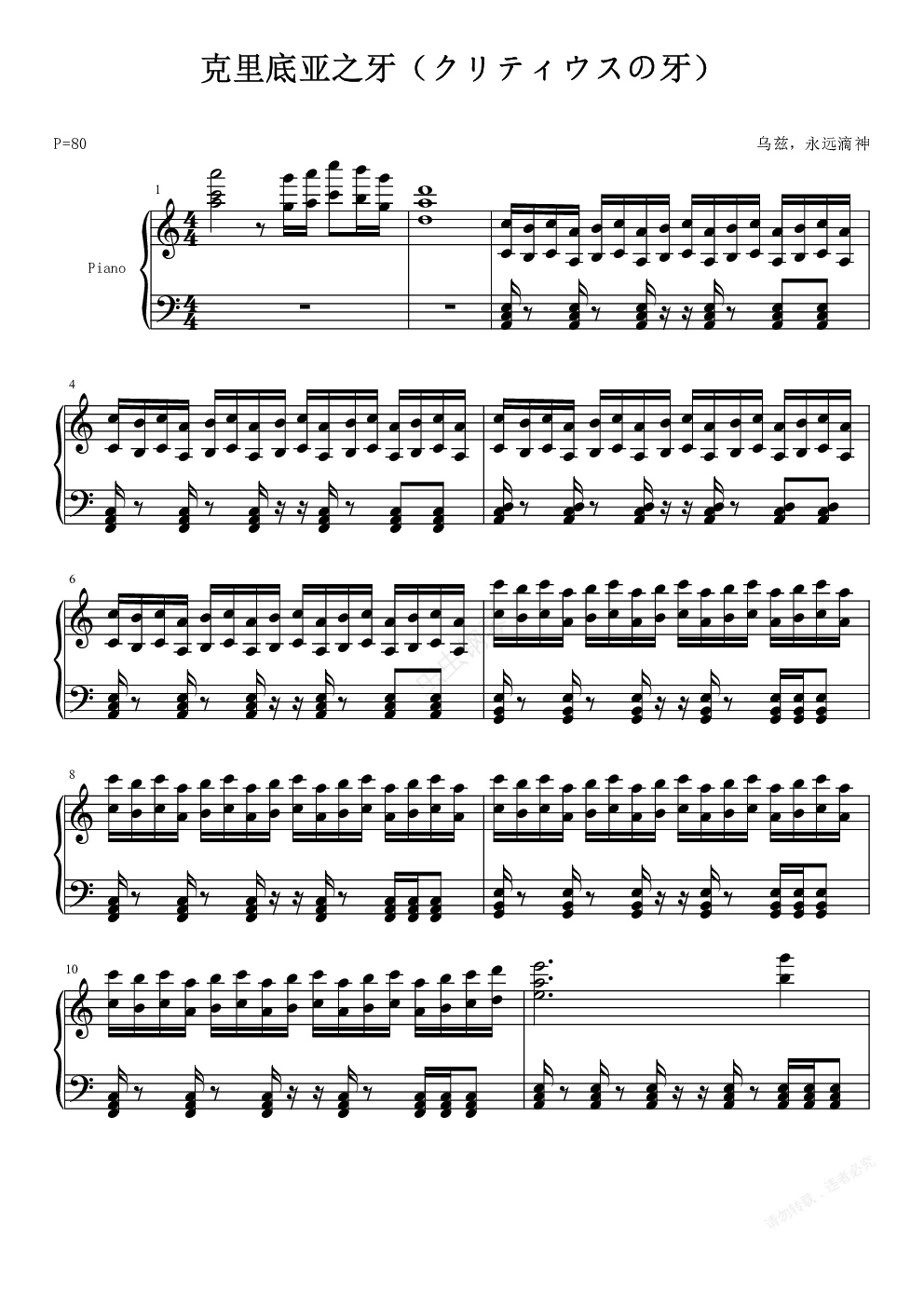 钢琴谱:[游戏王DM]简单版克里底亚之牙(クリティウスの牙)