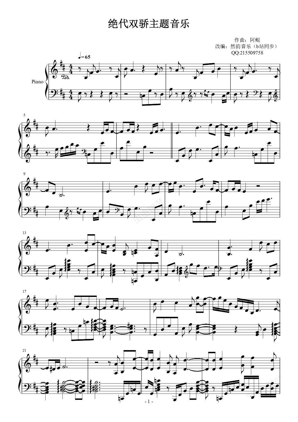 钢琴谱:电视剧《绝代双骄》主题音乐-阿鲲