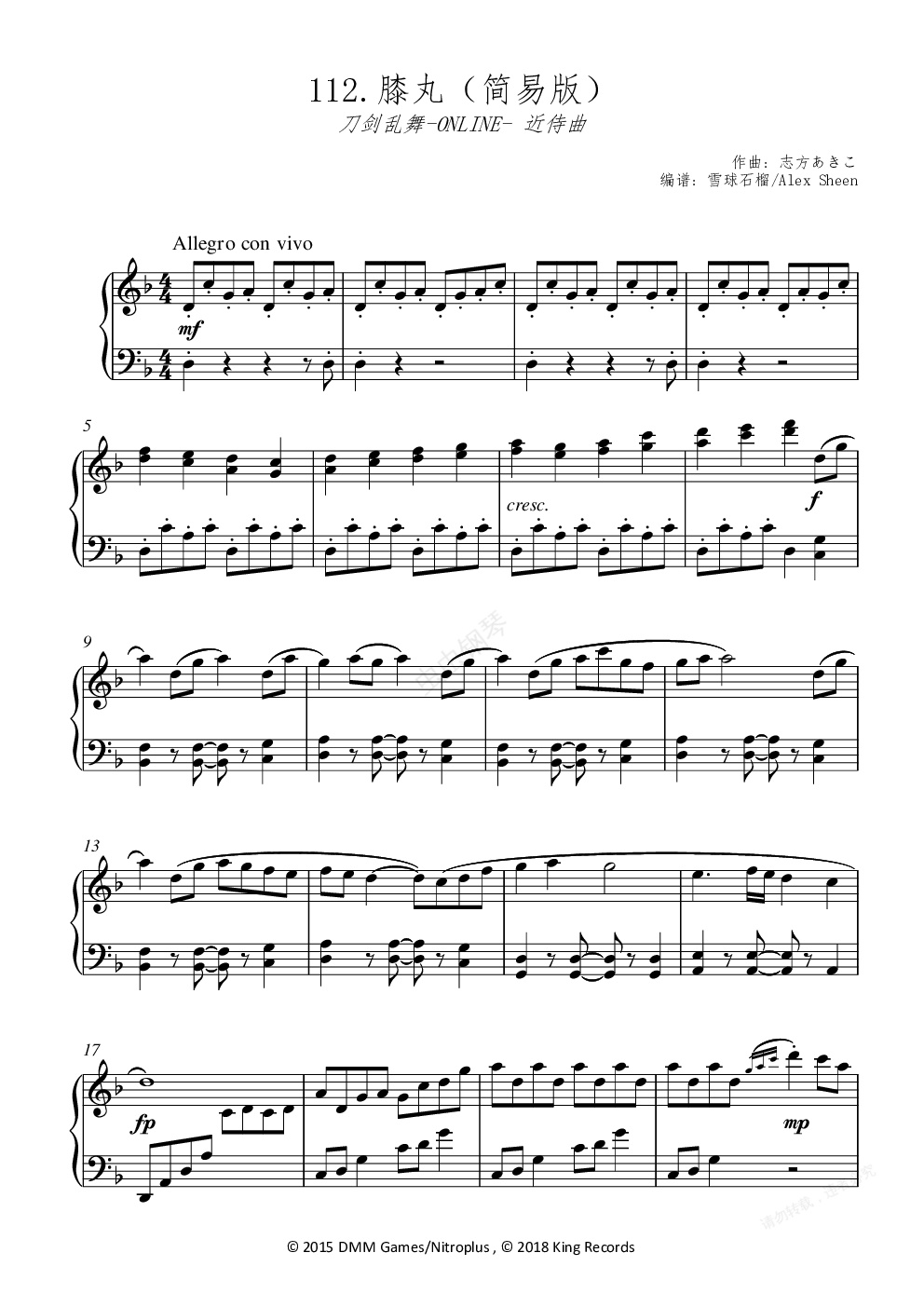 钢琴谱:膝丸 近侍曲 【刀剑乱舞】(简易版)