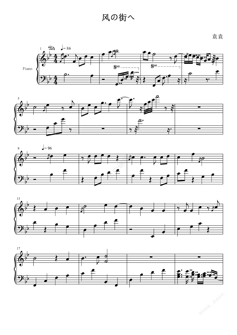 钢琴谱:翼年代记 - 风の街へ 抒情演奏版
