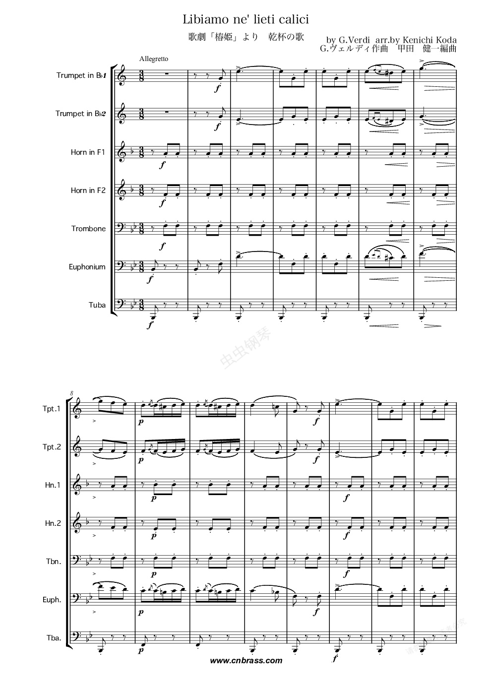 钢琴谱:-威尔弟歌剧《茶花女-饮酒歌》铜管重奏总分谱