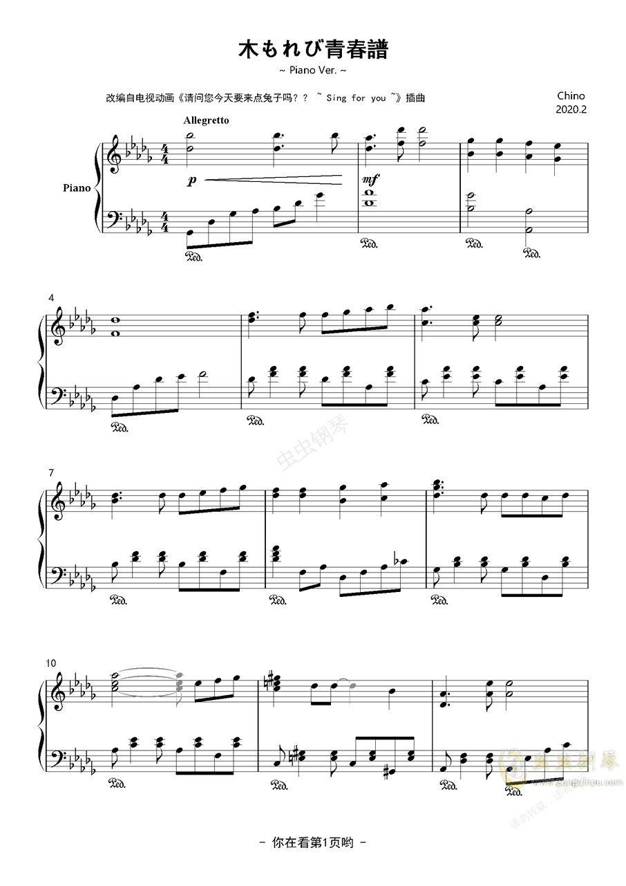 钢琴谱:【点兔】木もれび青春譜 ~ Piano Ver. ~