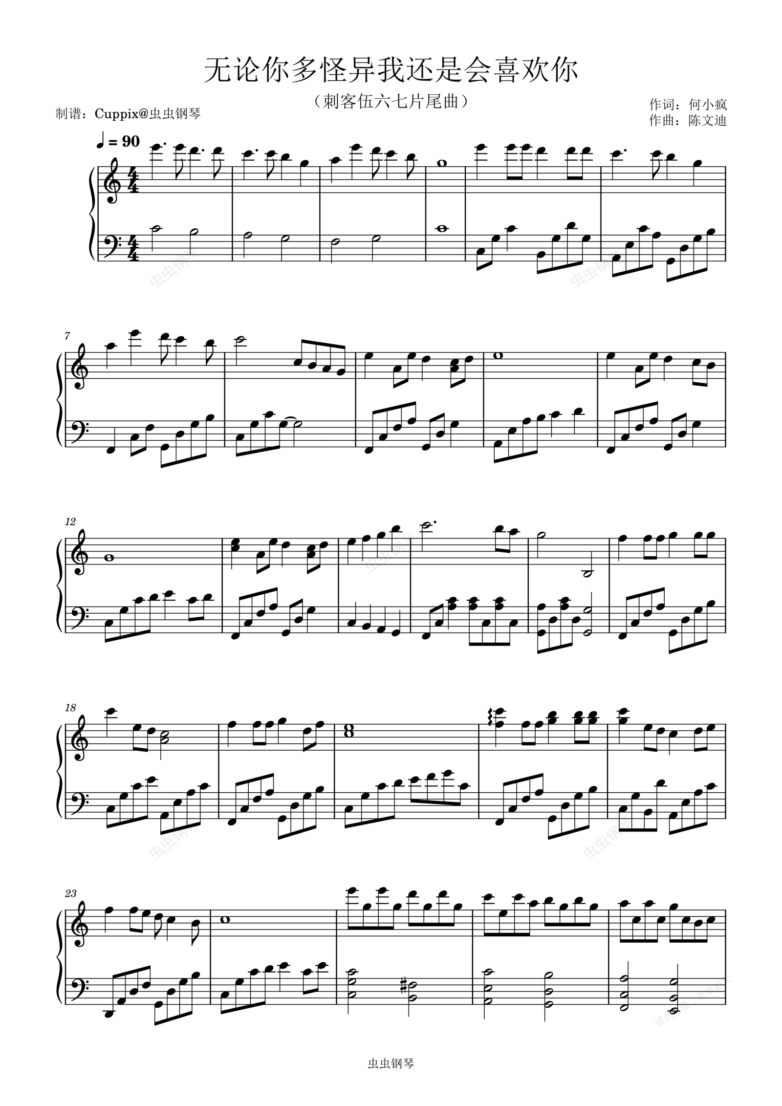 钢琴谱:无论你多怪异我还是会喜欢你(刺客伍六七片尾曲)