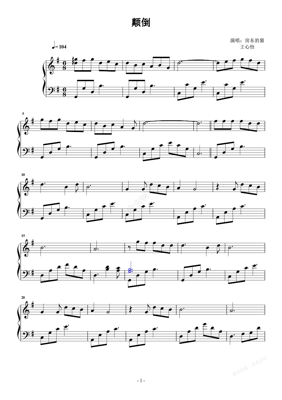 钢琴谱:颠倒