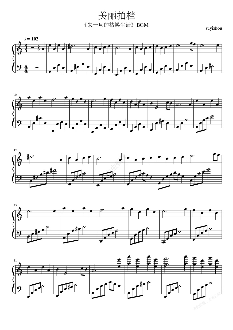 钢琴谱:朱一旦的枯燥生活BGM 《美丽拍档》