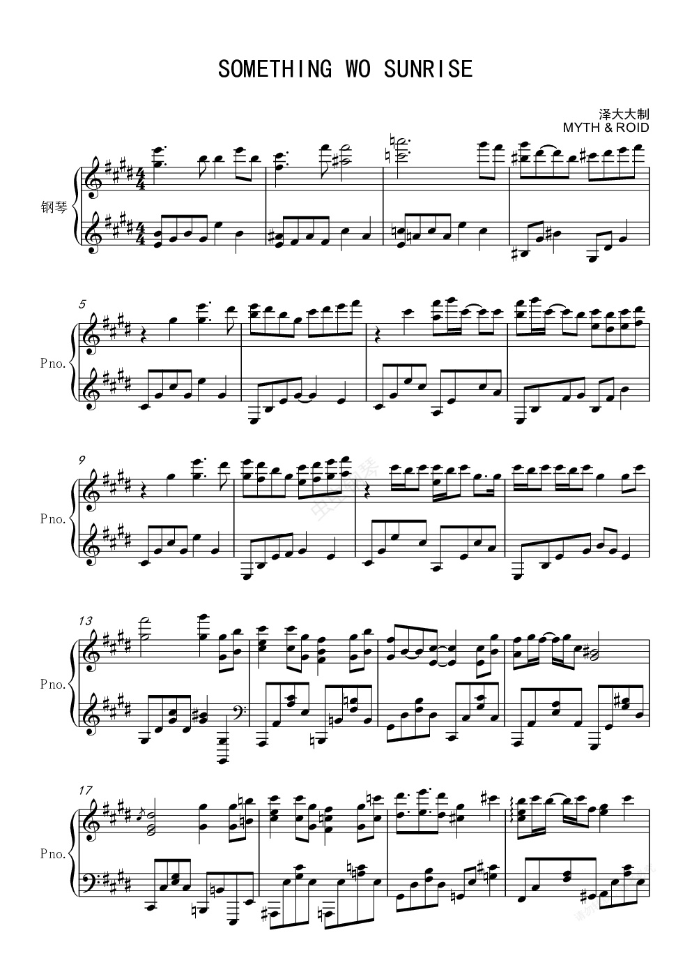 钢琴谱:SOMETHING WO SUNRISE(钢琴独奏版)