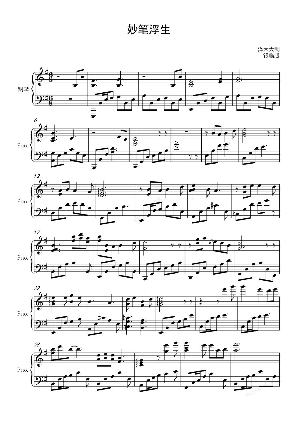 钢琴谱:妙笔浮生(钢琴独奏版)
