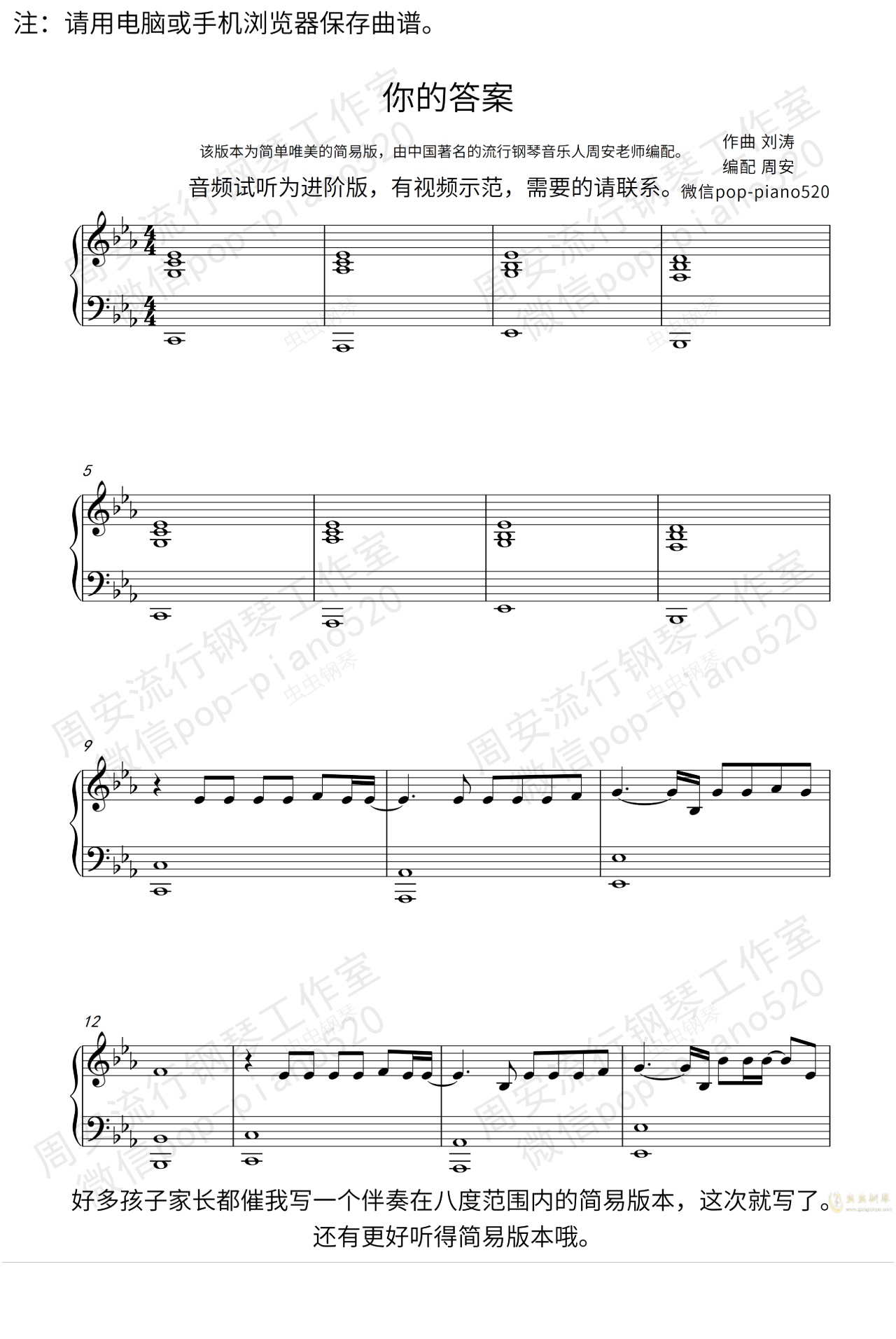 钢琴谱:《你的答案》超唯美钢琴版(周安老师)