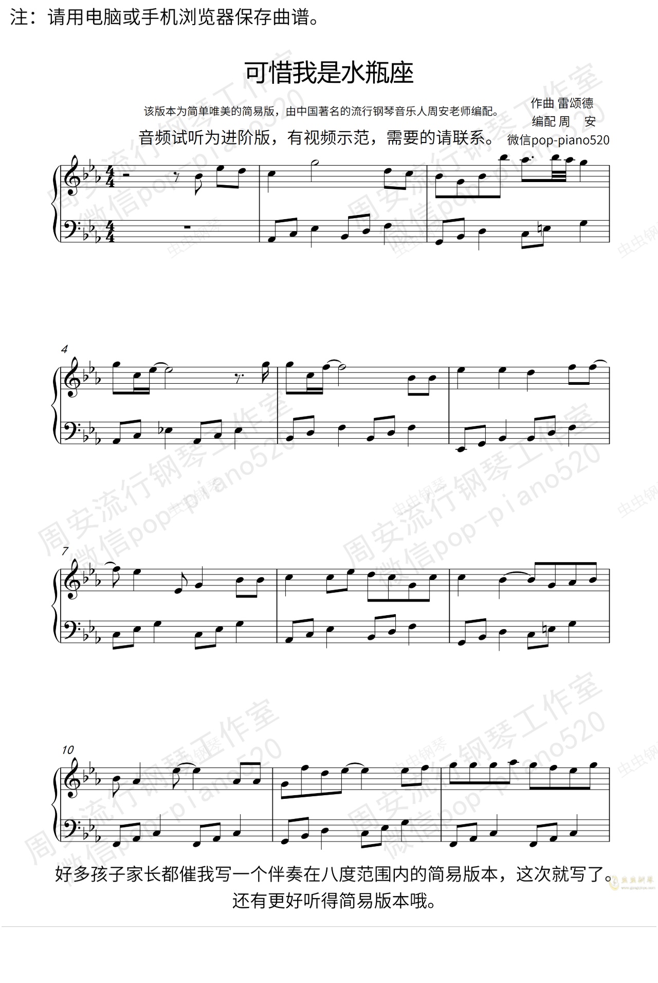 钢琴谱:《可惜我是水瓶座》超唯美钢琴版(周安老师)