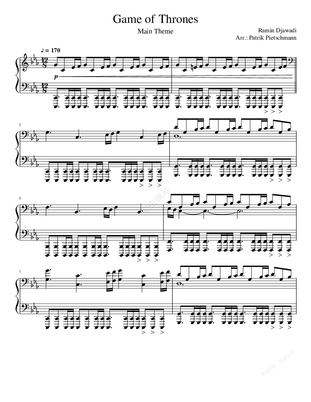 钢琴谱:权力的游戏【钢琴独奏】