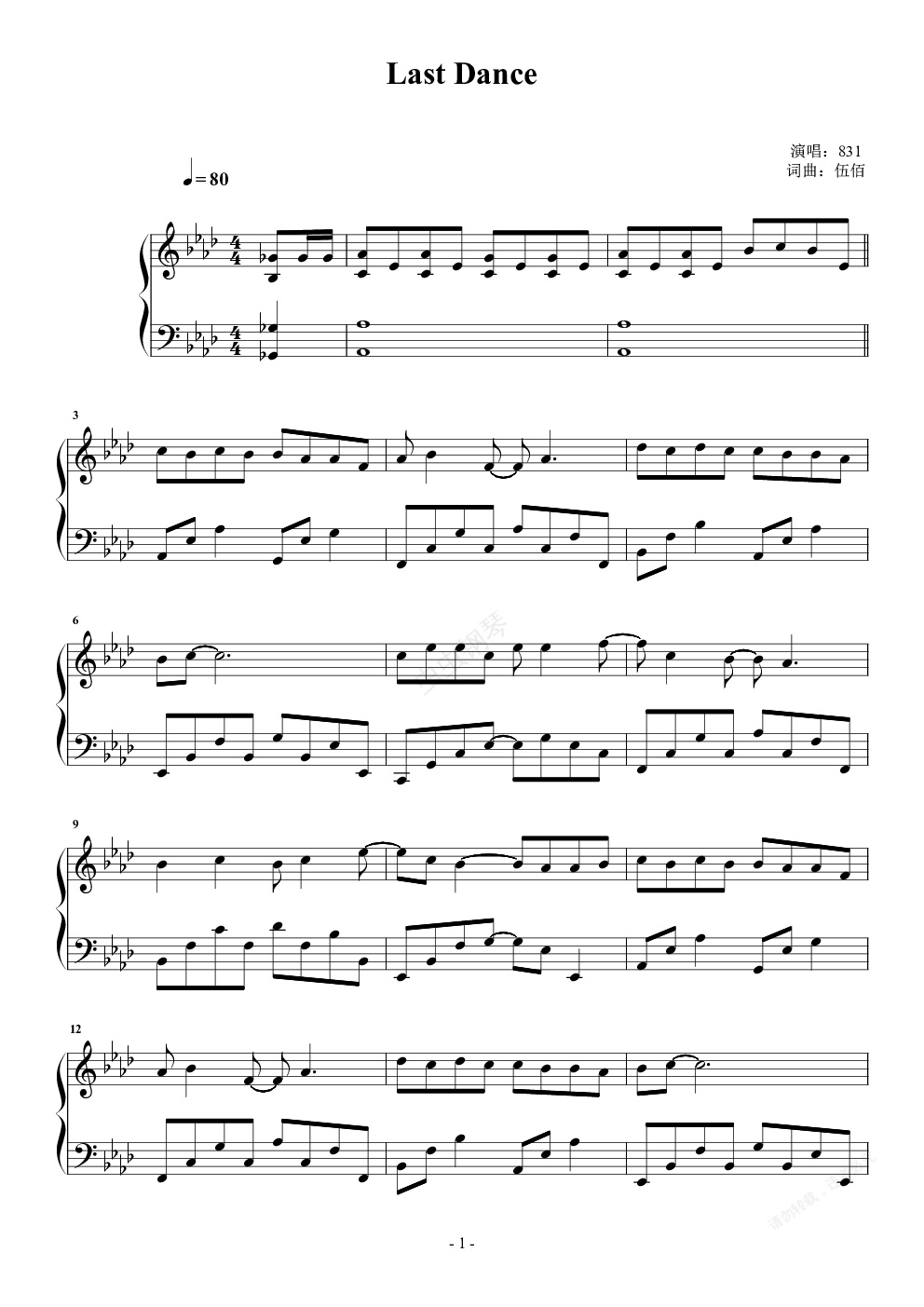 本曲谱为付费乐谱