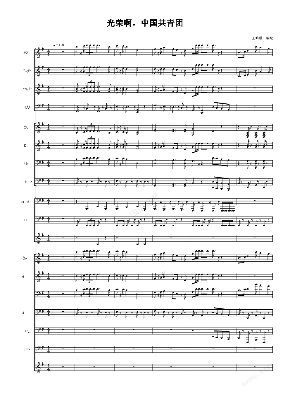 钢琴谱:【中国共青团团歌】光荣啊,中国共青团