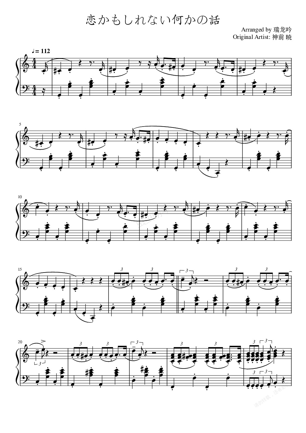 钢琴谱:物语系列BGM 恋かもしれない何かの話