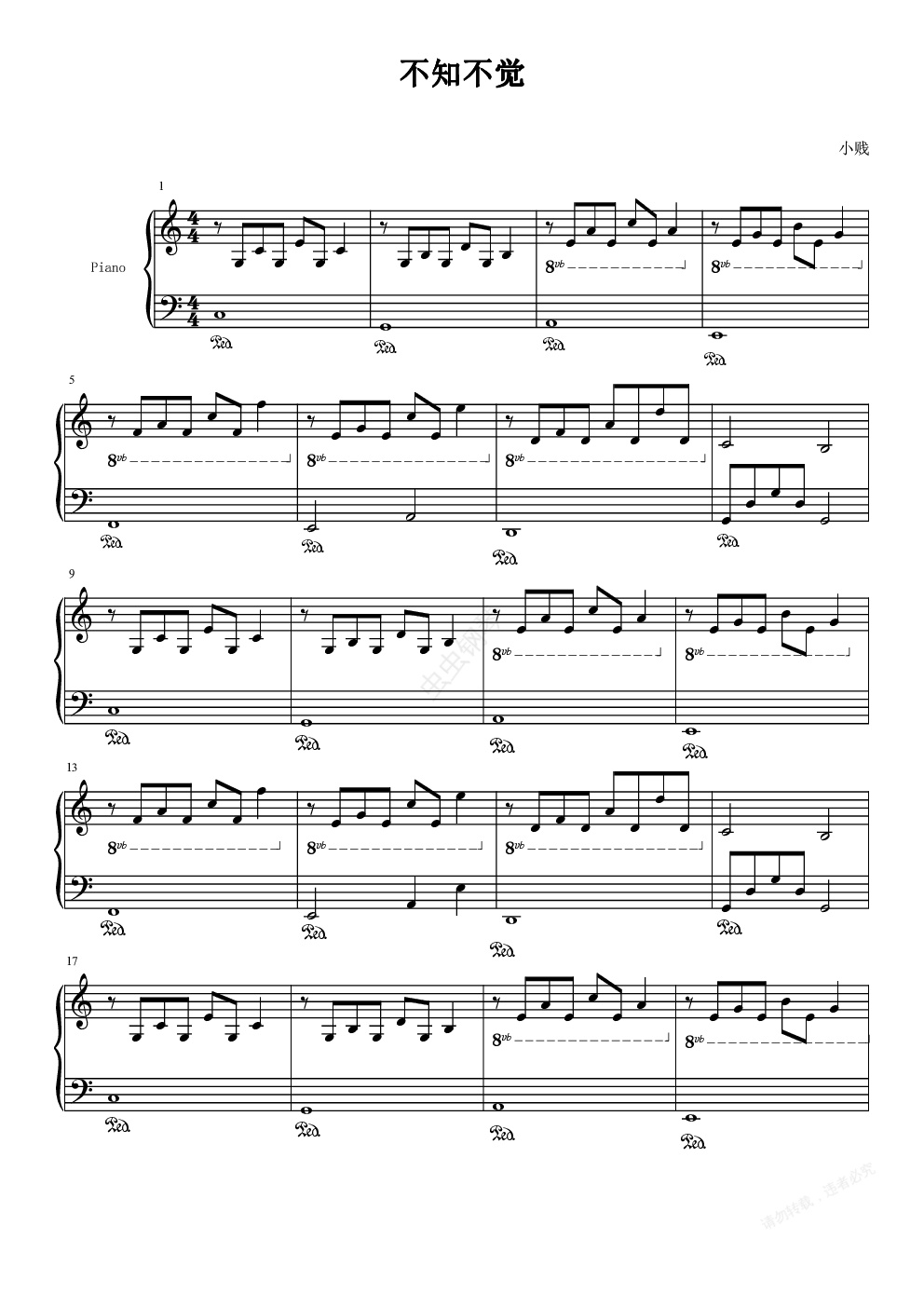 钢琴谱:《不知不觉》-小贱-弹唱版