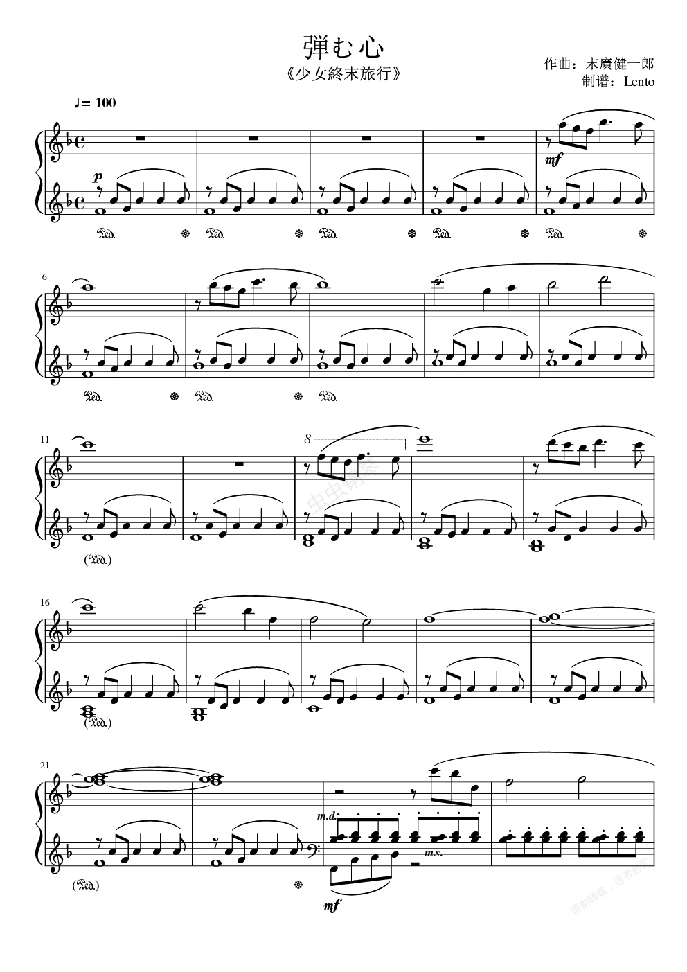 钢琴谱:弾む心(《少女终末旅行》BGM)
