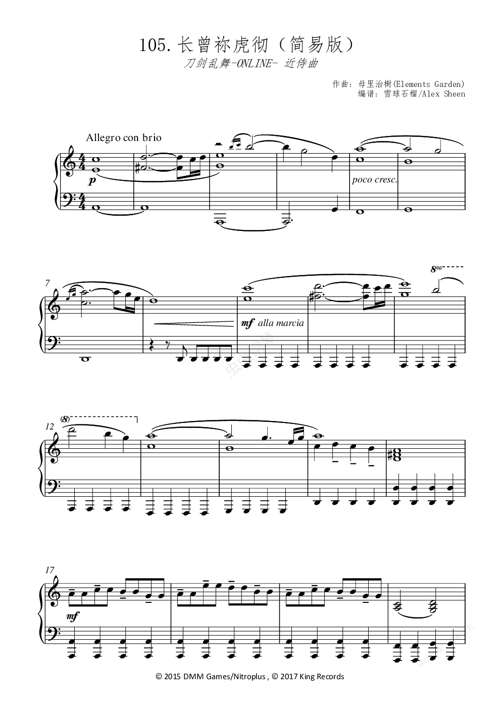 钢琴谱:长曾祢虎彻 近侍曲 【刀剑乱舞】(简易版)
