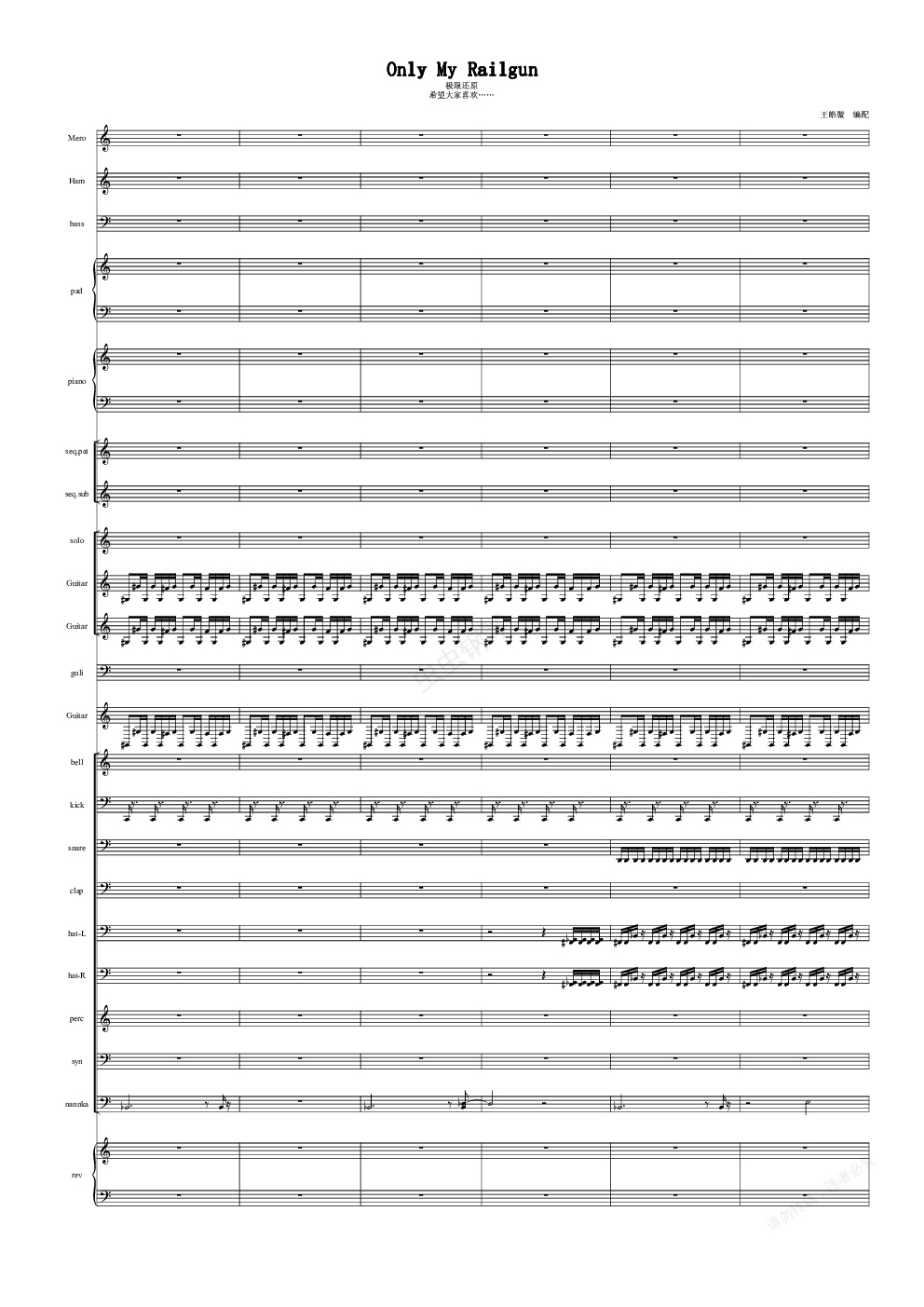 钢琴谱:【极限还原】Only My Railgun