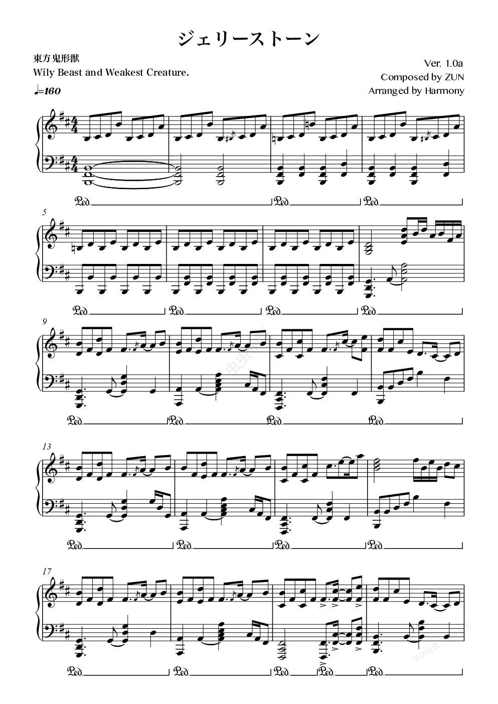 钢琴谱:【东方鬼形兽】【Arr】ジェリーストーン(Jelly Stone)