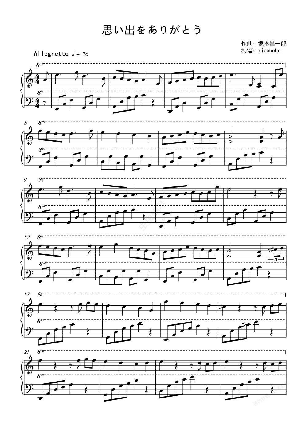 钢琴谱:思い出をありがとう(谢谢你的回忆)