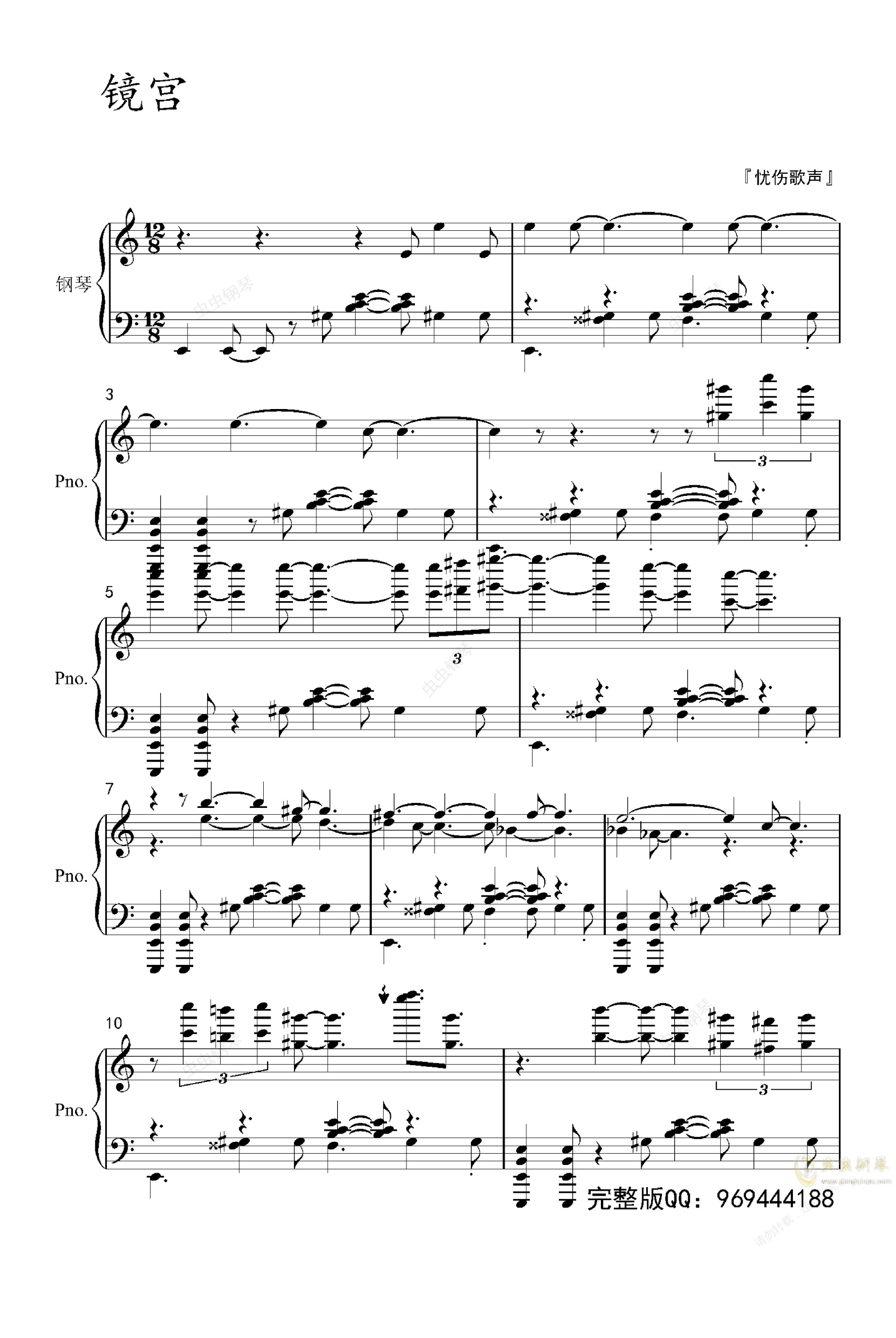 钢琴谱:【葫芦娃】镜宫(四手)——『忧伤歌声』
