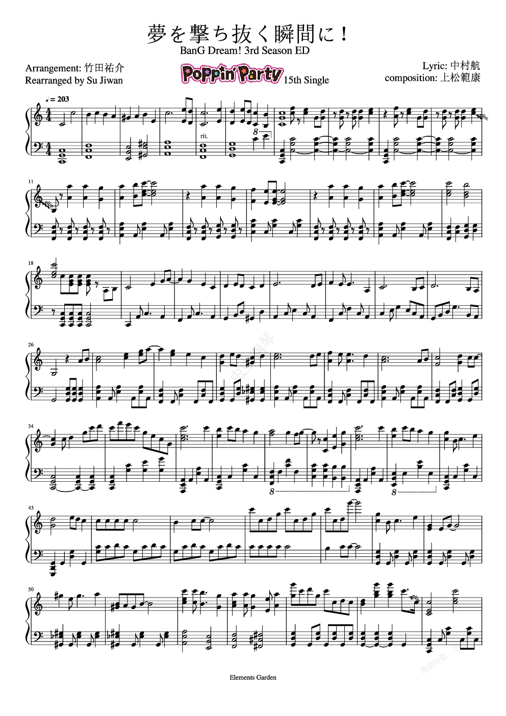 钢琴谱:[BanG Dream!] 夢を撃ち抜く瞬間に!