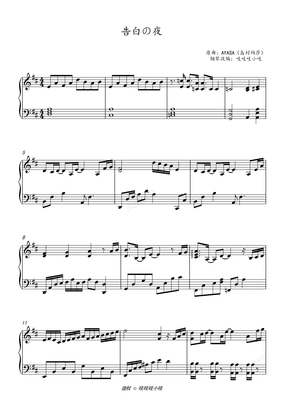 钢琴谱:告白之夜(尽力还原,钢琴独奏)