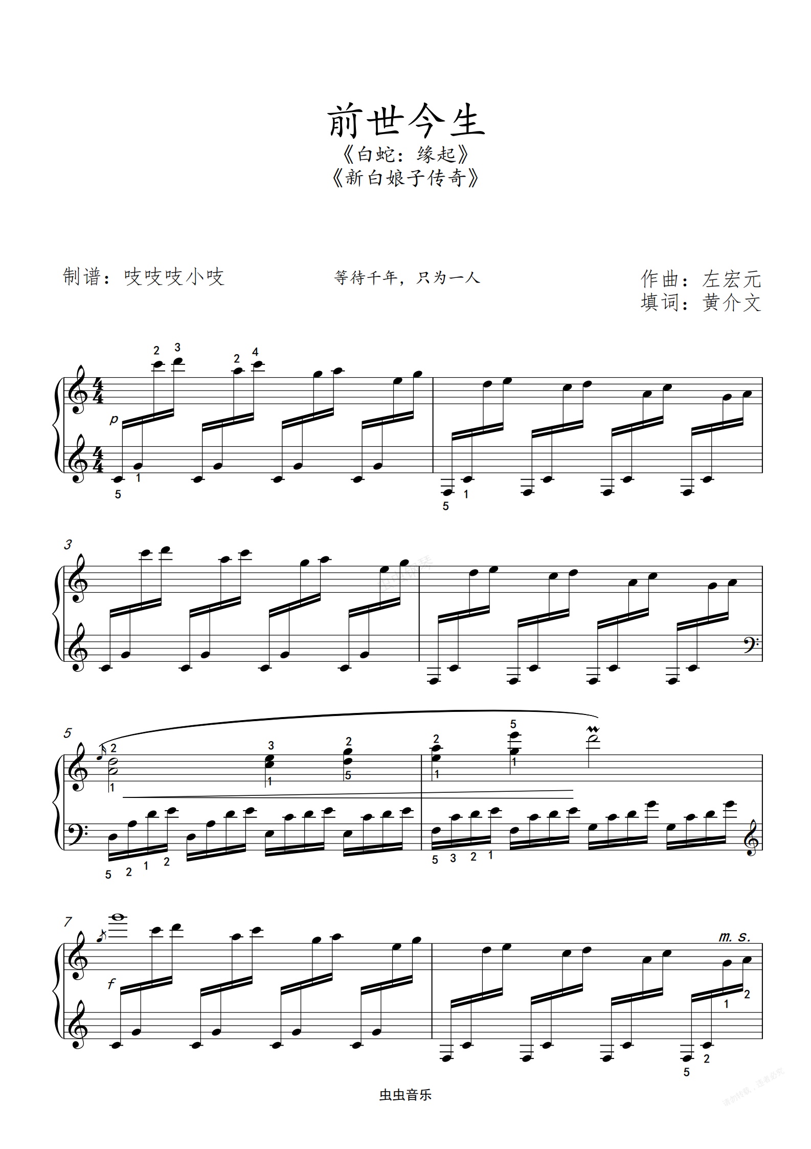 钢琴谱:前世今生(白蛇缘起,新白娘子传奇)