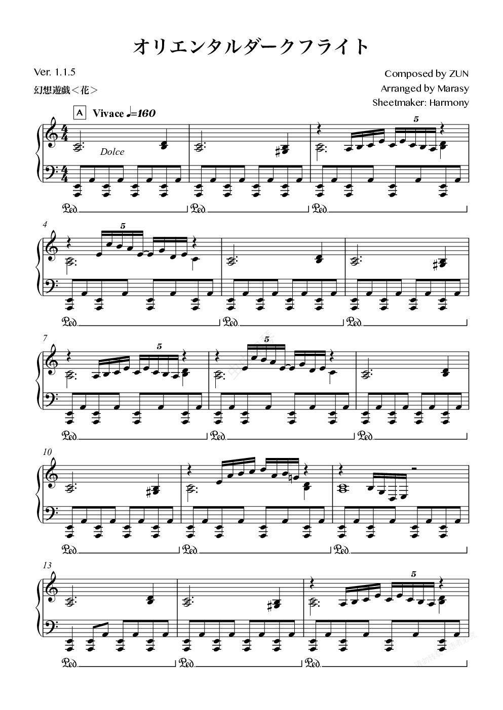 大家好,这里HX花映冢、幻想游戏<花>补完计划第二弹《 Dark》(又译:《东方暗夜飞行》),是东方花映冢出场自机、敌机雾雨魔理沙()的角色曲,发布于2005年,原作者上海爱丽丝幻乐团。这次带来的是触手猴收录于专辑《幻想游戏·花》的钢琴版本。希望大家喜欢。*特别注意 本曲织体野蛮至极 慎弹 慎弹 慎弹*花映冢Music Room·季候音樂室曲评雾雨魔理沙的主题曲 因为是无意中谱的曲,而带入了一点反派角色感, 所以急急忙忙地追加了某种诙谐的涩音。 这样的话,涩音带入了些微的中东味可不得了。 只是,由于这次的游戏性质,游戏表现出了没完没了的潮流般的高速感和浮游感,所以还是想要相信乐曲在那方面还是有所表现的啊。[IMG]/pu/2020/3/26/__4960__[/IMG]