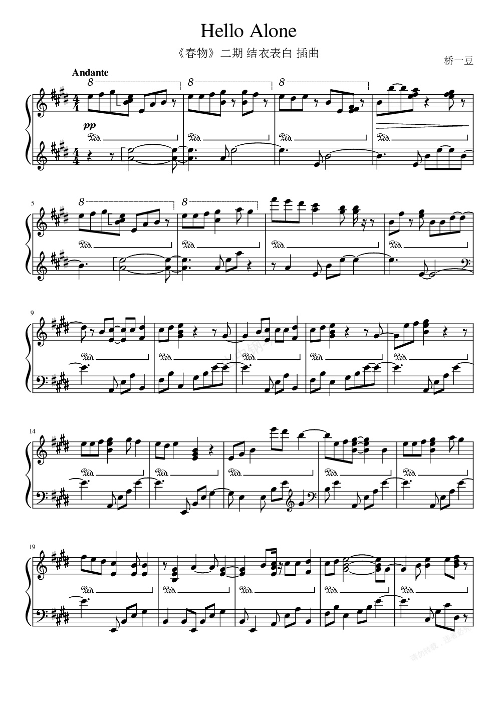 钢琴谱:Hello Alone (结衣告白 插曲)