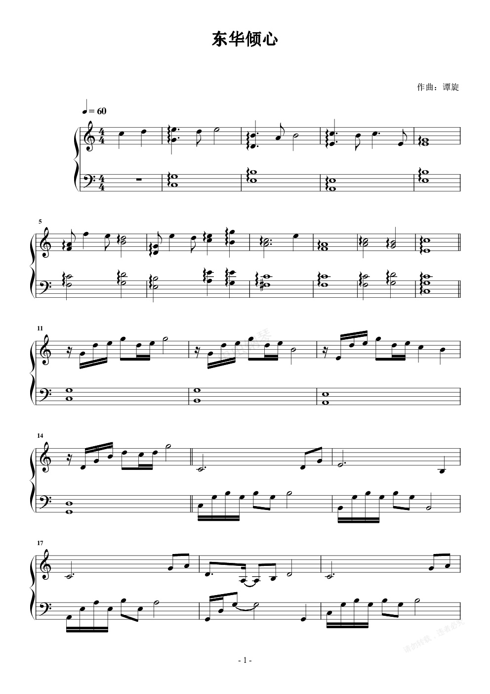 钢琴谱:东华倾心 谭旋