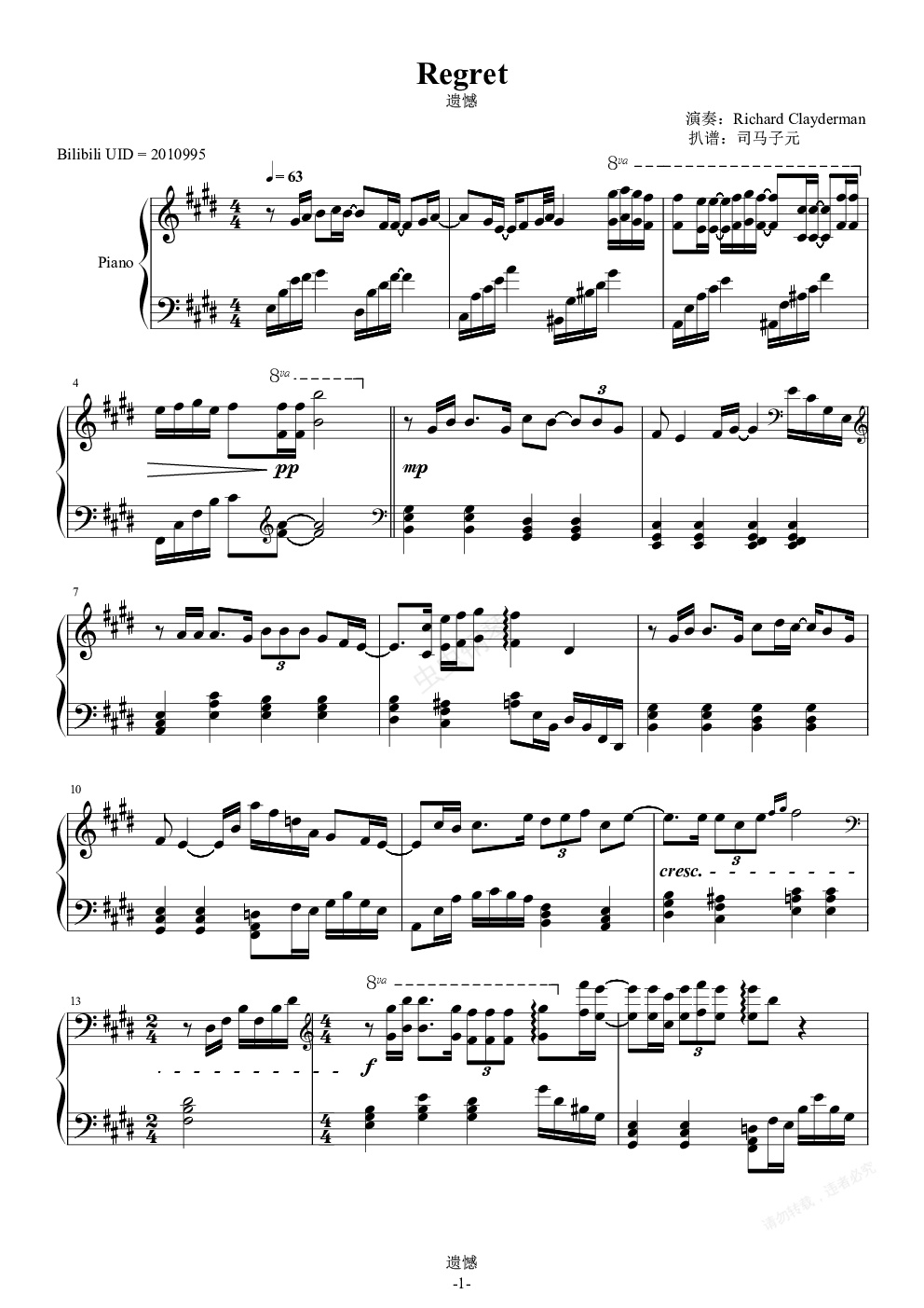 《》cover许美静的《遗憾》当时中方公司希望克莱德曼先生能在钢琴上演奏这首曲子最终该曲收录在《Love Us 2》(滚石·巴黎·爱相随2)中(资料来源于银色乐航网)(这首曲子的左手有点难配orz)