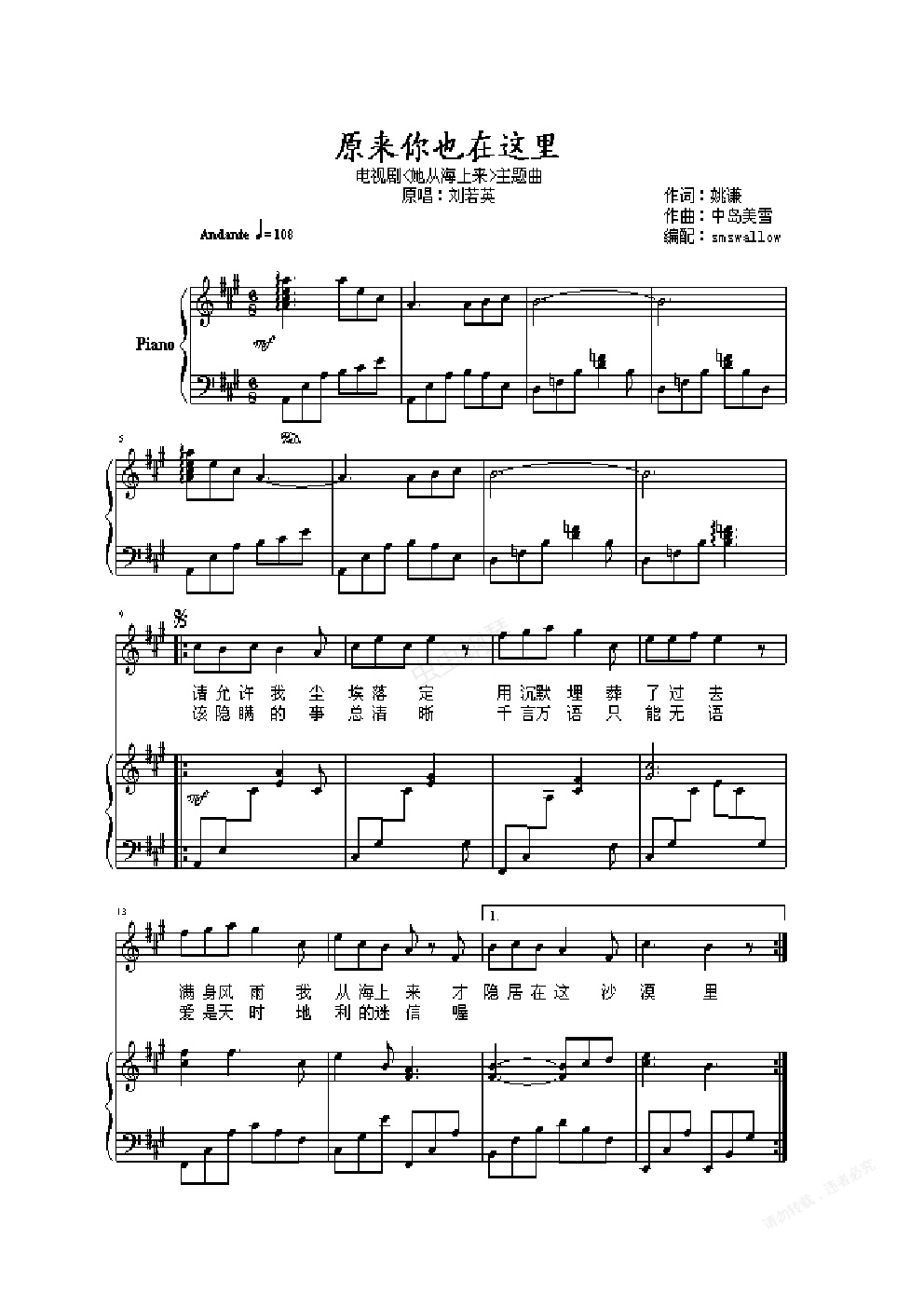 您的位置: 首页 > 钢琴谱库 > 原来你也在这里