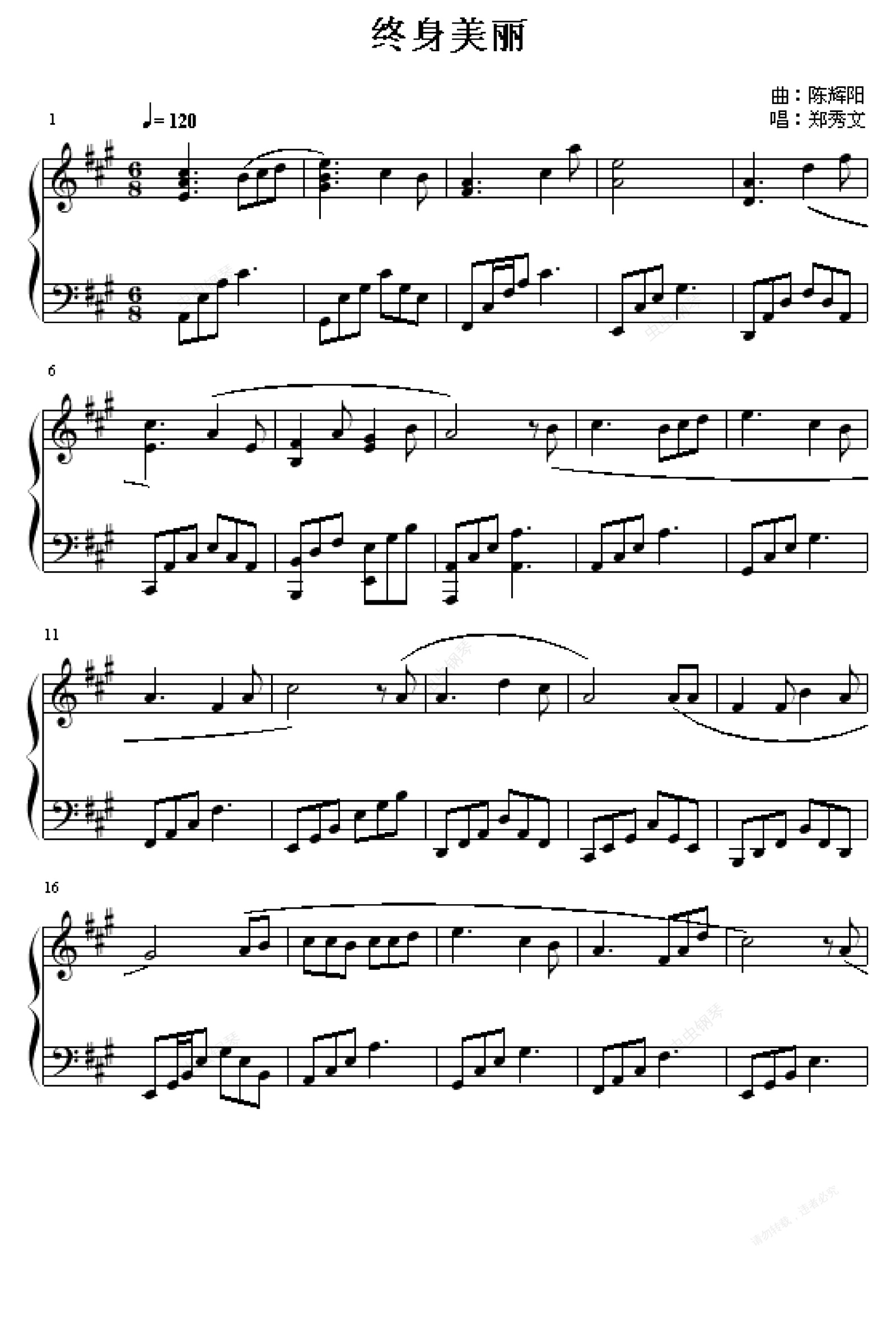 钢琴谱:终身美丽