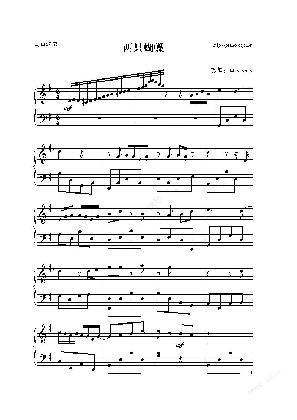 钢琴谱:两只蝴蝶-Music-boy