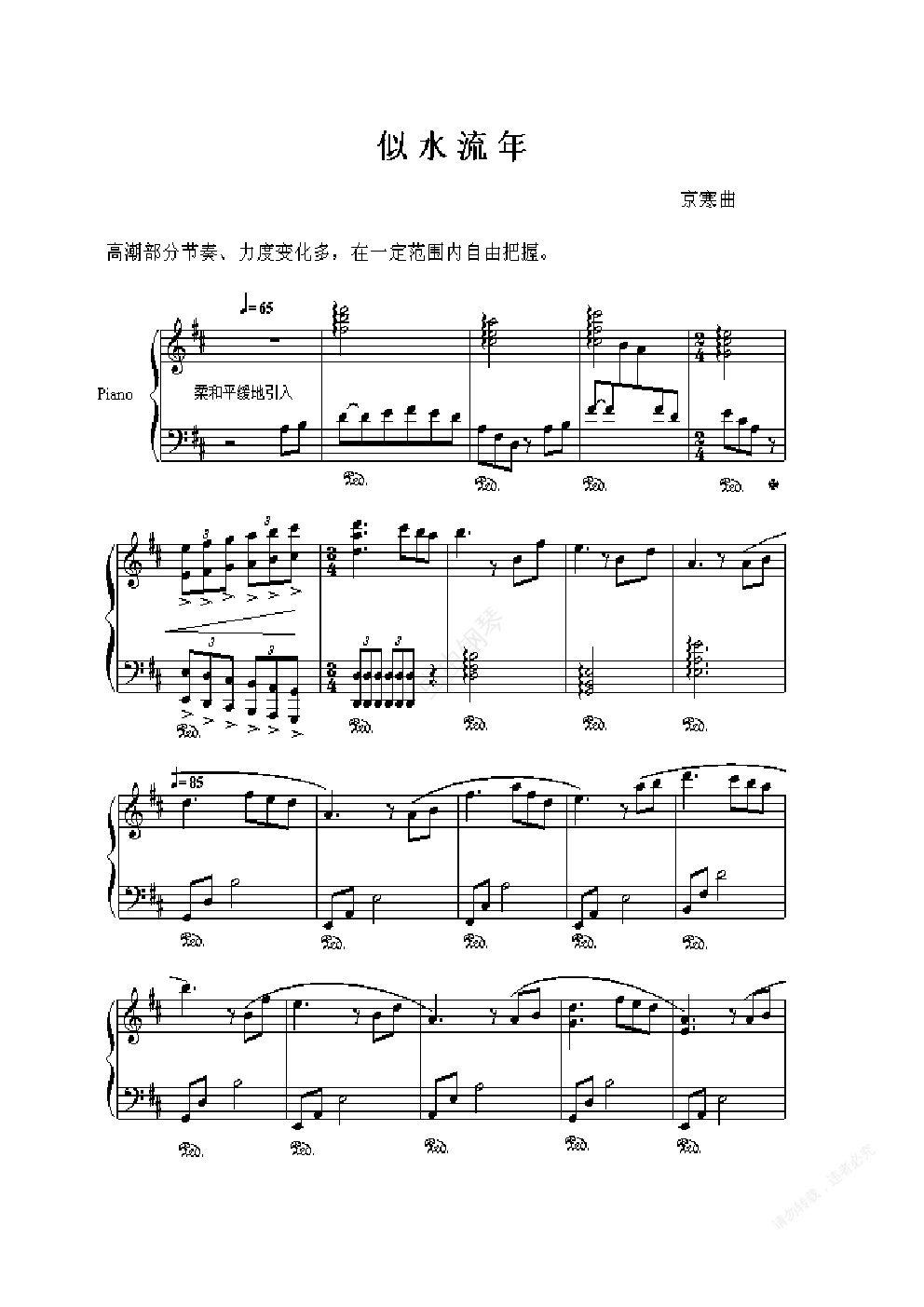 《似水流年》题解: 安静的夜晚,耳边传来似曾相识的旋律, 不知不觉中,思绪随着音符,去找寻曾有的心动。 突然,追忆被急促的响动打断, 蓦然发现,时光似水流逝, 美好的回忆,此刻一一浮现, 而现实却刻下了诸多却之不去的遗憾。 于是,心情如波涛翻腾,渴求一回痛快的宣泄。 当同样的旋律又悄然响起, 你,会陪我一起聆听吗?