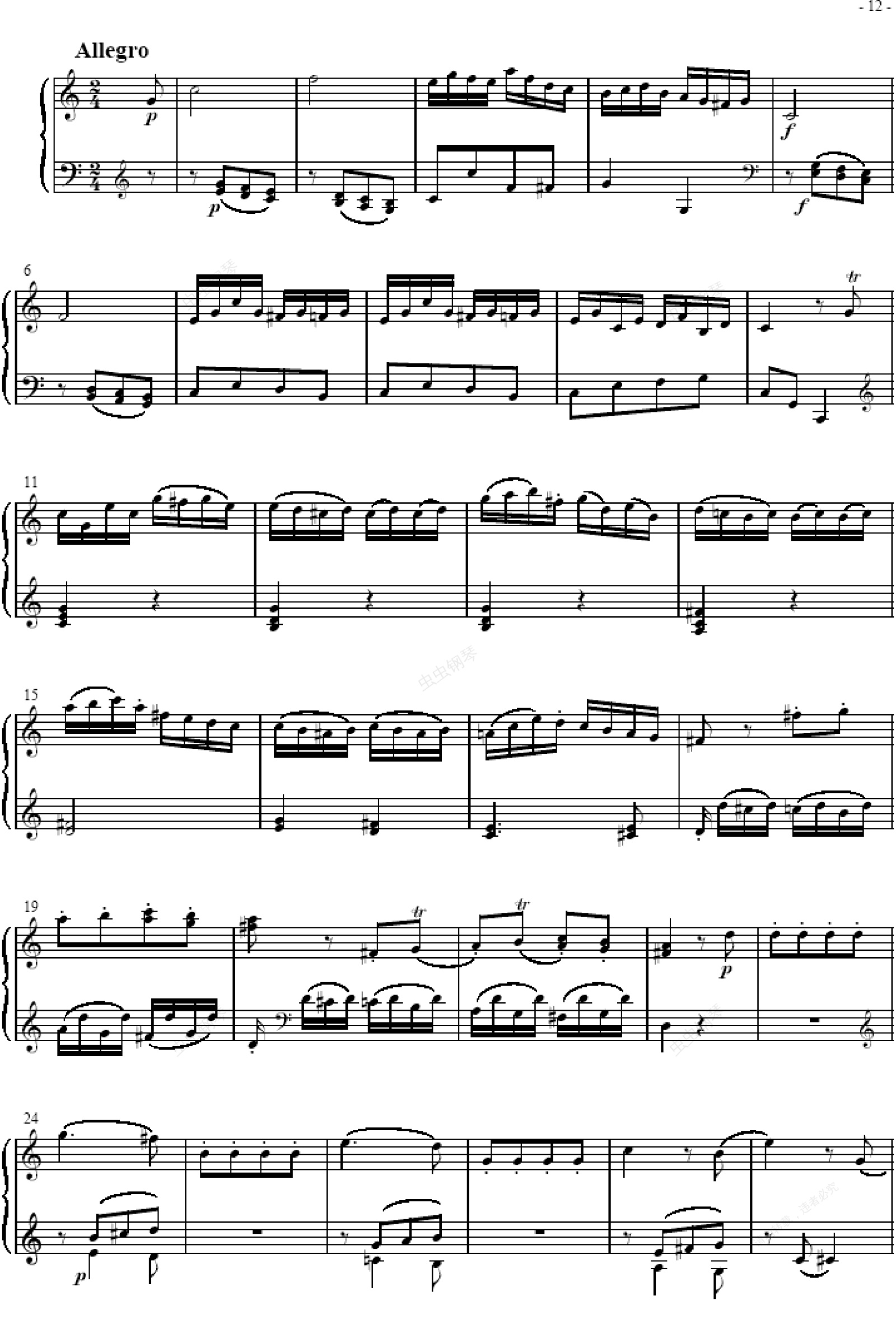 钢琴谱:奏鸣曲 Sonatas K279 Mvt.3