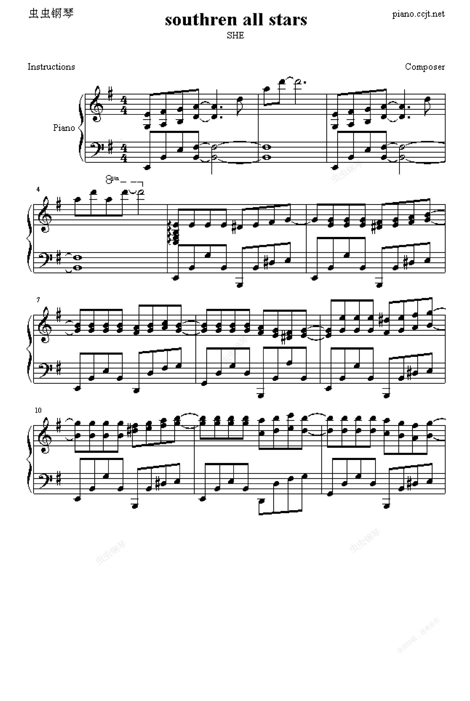 钢琴谱:southren all stars