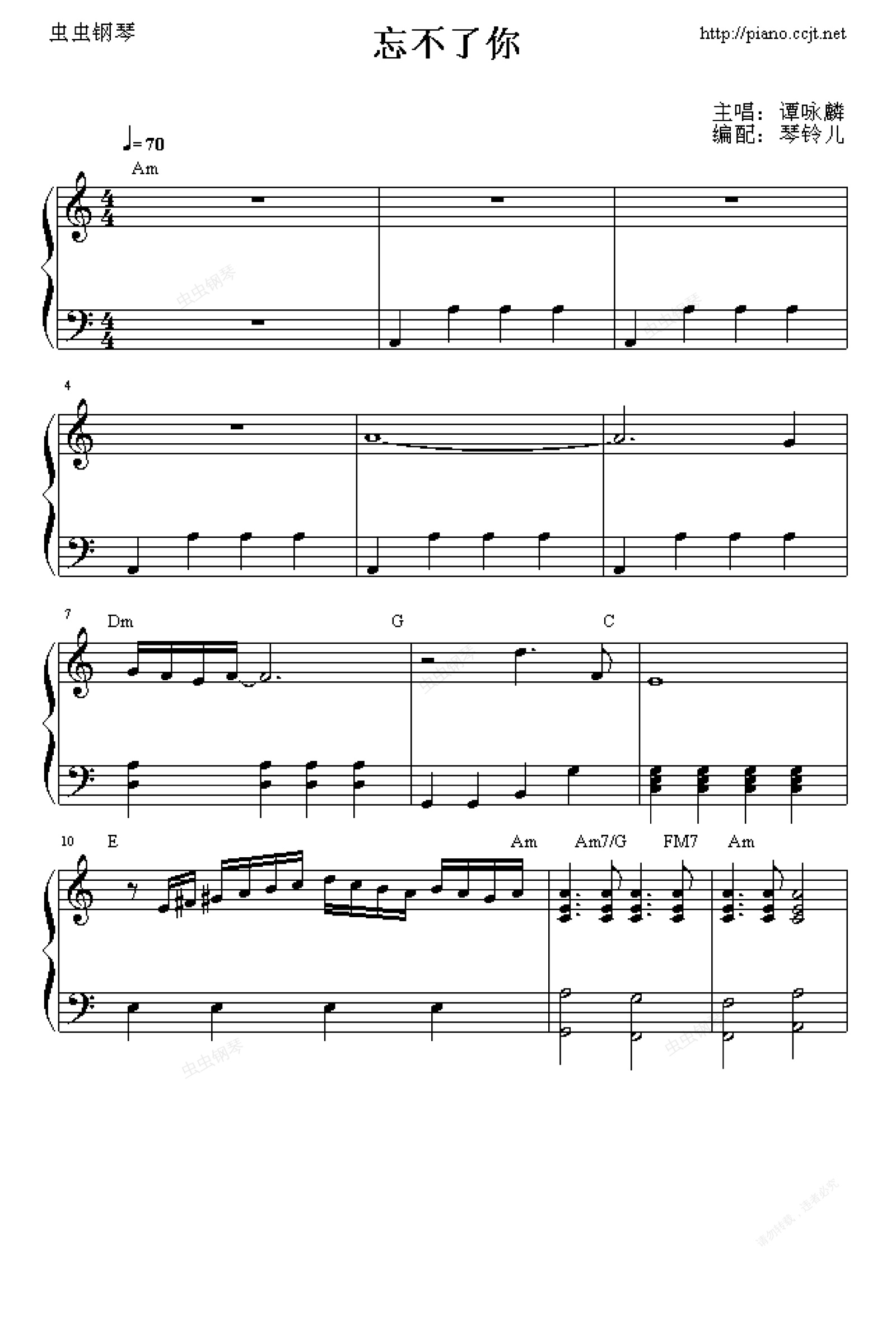 钢琴谱:忘不了你