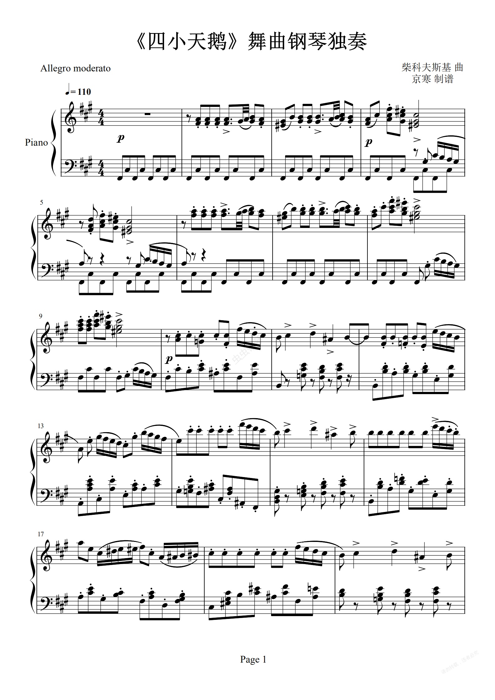 钢琴谱:《四小天鹅》舞曲钢琴独奏