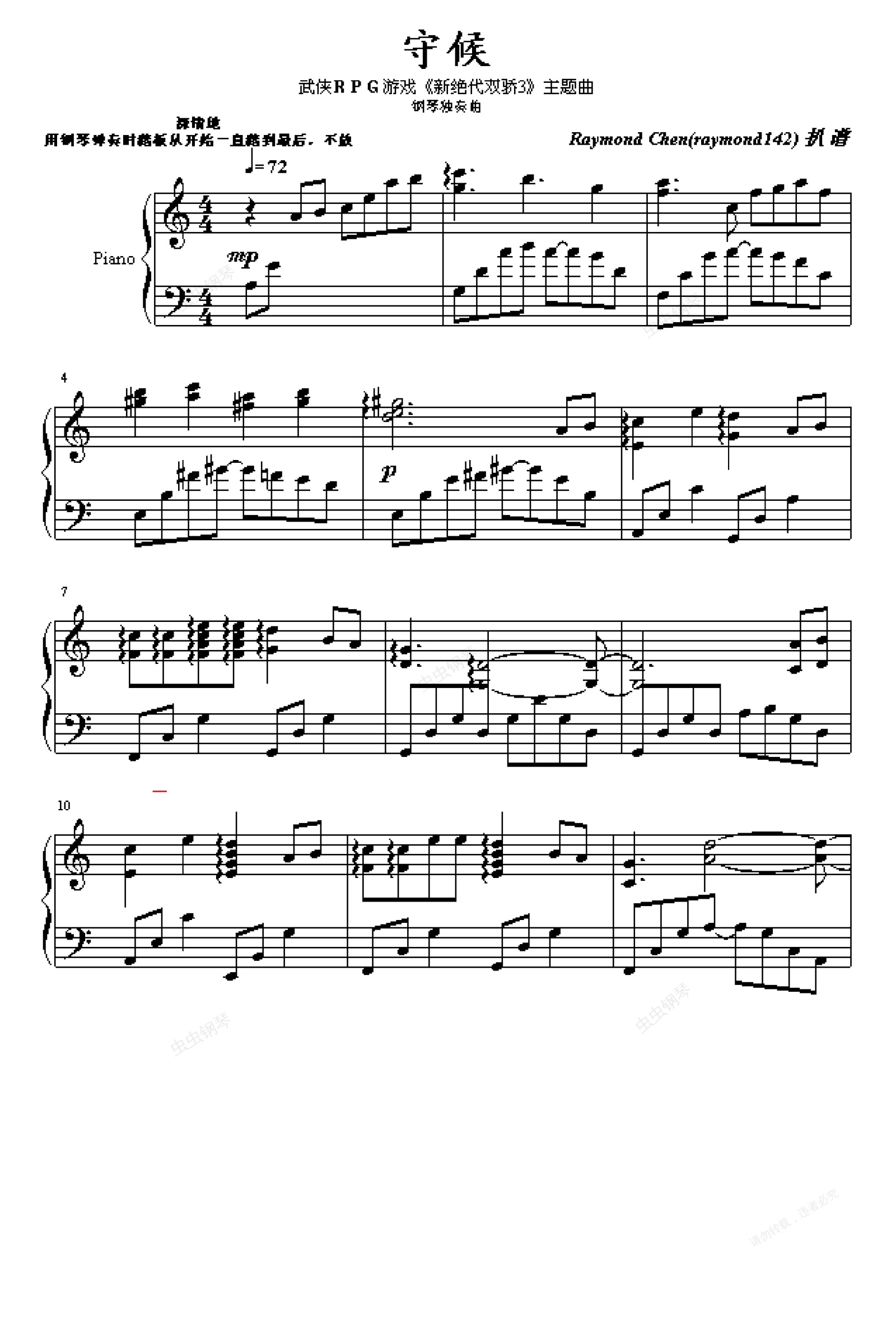 钢琴谱:守候-游戏《新绝代双骄3》主题曲