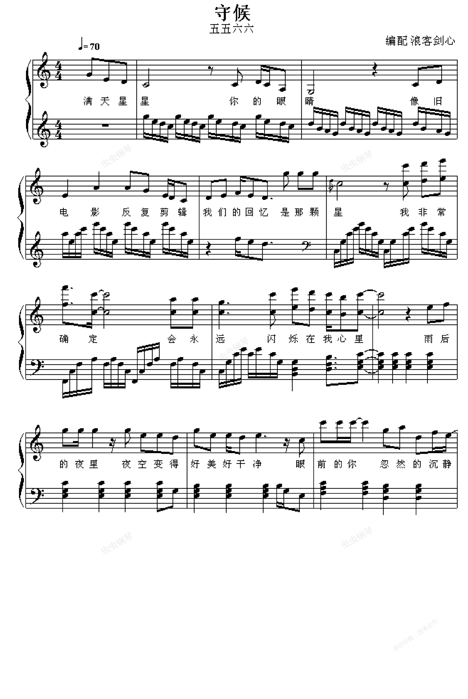 钢琴谱:守候